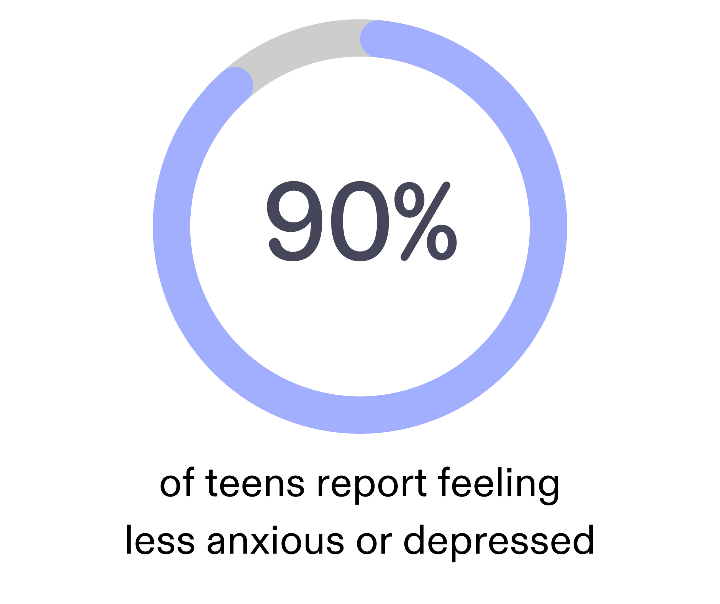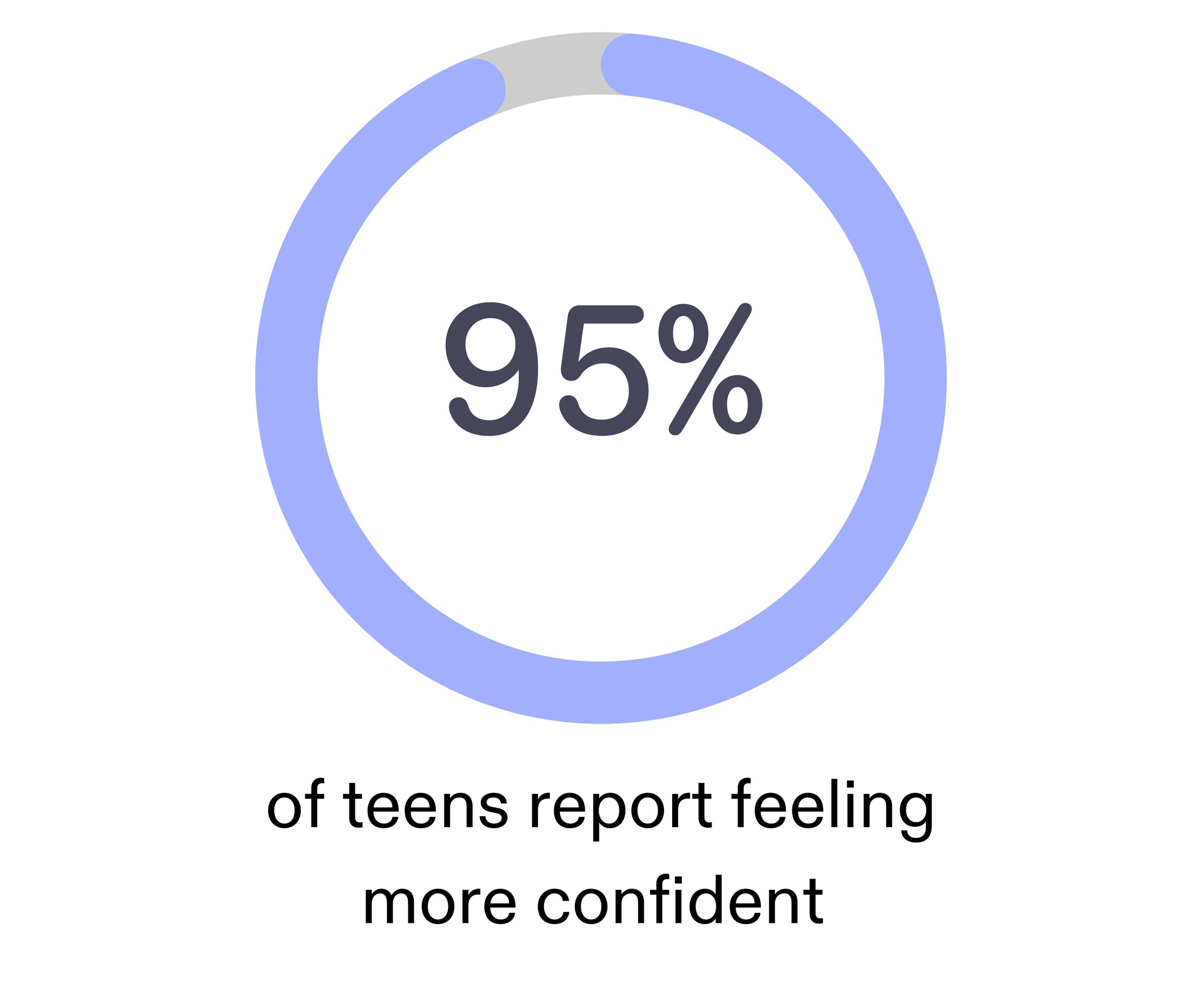 Your teen’s mentor will also guide them through a video curriculum that teaches science-backed psychology skills. These bite-sized videos teach teens strategies to overcome anxiety, reduce procrastination, manage stress, and plan for the future.